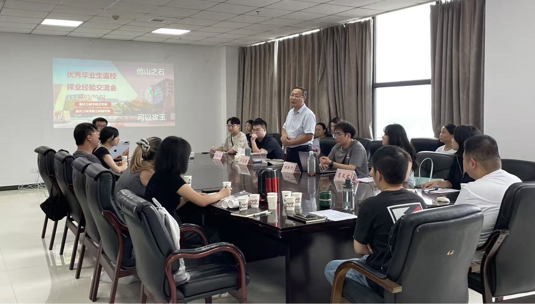 2025年10月2日下午4时30分,重庆三峡学院文学院与三峡研究院在科技楼611会议室联合举办优秀毕业生返校择业经验交流会。本次活动特邀三位在不同毕业去向中取得突出成绩的优秀校友返校分享。三峡研究院院长王志清教授主持活动,文学院与三峡研究院部分师生代表参会。